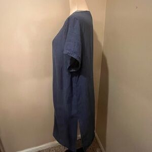 Jjill Linen Blue Round Neck Swimsuit Coverup, size Large