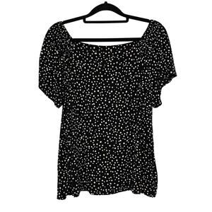 Jjill Wearever Collection Off Shoulder Dot Blouse Black White Size Medium Petite