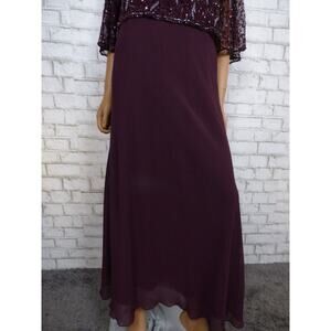Jkara Wine Purple Chiffon Cowl Neck Beaded Cape Gown 12P NEW