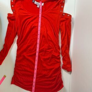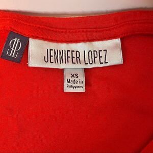 Orange JLo top with silver accents and open sleeves on shoulders, super stretchy and comfortable.