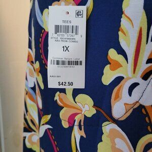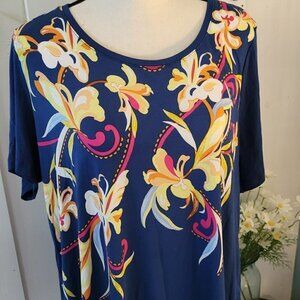 Jm Collection Navy Peon Combo Short Sleeve Tunic