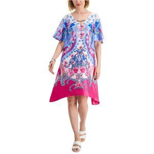 NWT - Jm Collection Women's Printed Swing Dress, Fuscia Tulipan