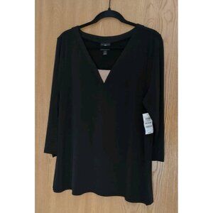 Jm Collection Womens V-Neck 3/4-Sleeve Top, Black Size M New with tags