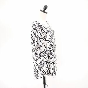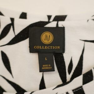 Jm Collection White And Black Leaf Print Scoop Neck Top Large Short Sleeve Rayon