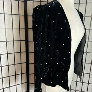 Jo Ed Sophisticates Black Velvet with Pearls Open Front Jacket