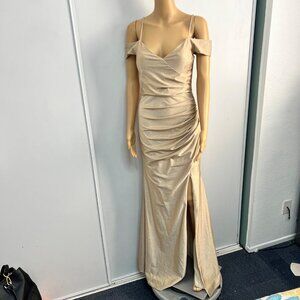 Jo + El Off Shoulder Gown Long Elegant Golden Party Evening Dress Womens Size M