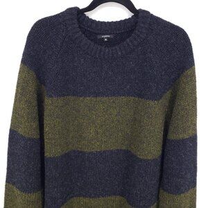 Jo Gordon Oversized Striped Chunky Knit Lambswool Jumper Sweater M Green Gray