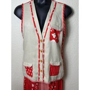 Jo Hardin Sz 10 Vtg 2 Pc Vest Skirt Set Orange Floral Linen Rayon Boho Patchwork