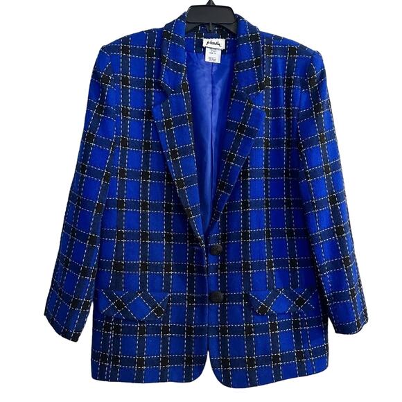 Jo Hardin Vintage Blue Wool Blend Plaid Academia Jacket Blazer Size 12