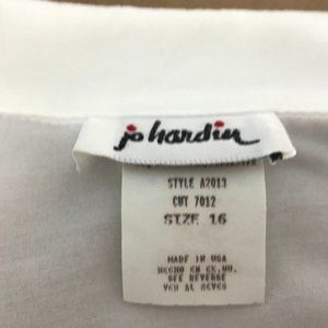 Jo Hardin Women's Top Size 16 White Blue Button Up Front Shoulder Pads Sleeves