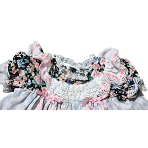 Jo Lene Dress Baby Girl 0-6 Months Floral Lace Ruffle Pink Bows USA Made Vintage