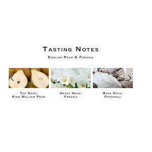 Capturing the essence of autumn, the sensuous freshness of just-ripe pears is wrapped in a bouquet of white freesias and mellowed by amber, patchouli, and woods for a luscious and golden olfactory sensation.
