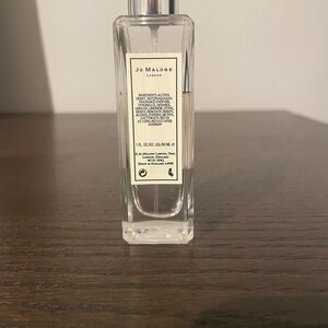 Elegant clear bottle with a shiny silver cap. Features the classic Jo Malone label.