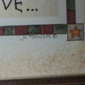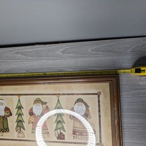 EUC Jo Moulton framed Christmas print featuring 3 Santas and the words "I Still Believe" under each Santa.