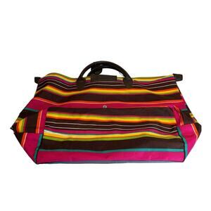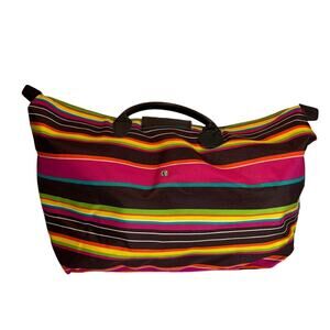 JoAnn Marie Designs Large Tote Bag Travel Beach Brown Multicolor Stripe, EUC