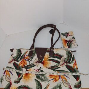 JoAnn Marie Designs: Multi color tote bag with zipper and snap closure. Includes matching small accessory bag.