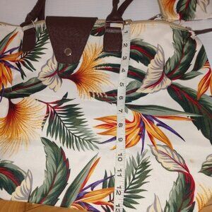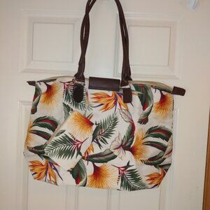 JoAnn Marie Designs: Multi color tote bag with zipper and snap closure.