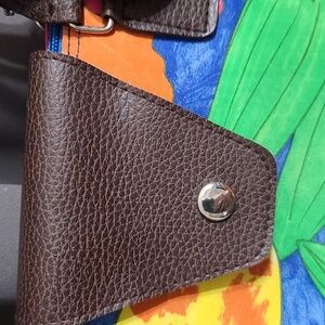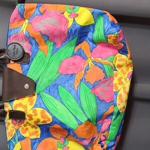 JoAnn Marie Designs Tote Beachy Colorful Tropical Flowers Water Resistant 13x19" EUC. 2 handles. Snap/zip close. Pouches and key ring inside. Snap on back so might be missing something. Pre-owned, good condition. (1574)