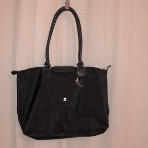 JoAnn Marie Designs LYNN Black Vinyl Personalized Foldable Packable Shoulder Bag