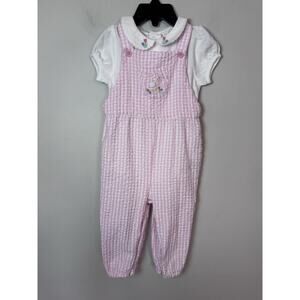 Dress your little one for egg hunting, picnicking days in this 2-Piece Embroidered Dungarees & Body Set. This practical all-in-one outfit features adorable pink gingham dungarees with a white Peter Pan collared short-sleeve top. Complete with delicate duck embroidery on the collar and chest pocket, this set radiates charm and comfort for all kinds of sun-kissed adventures.