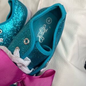 JoJo Siwa Blue and Pink Glitter Sneakers with Oversized Bows