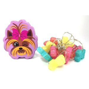 The compact, photo frame, tattoos, and charm are new, in original packaging. The squishy and light set are used and have been played with. The light set has not been tested. Batteries not included, sold as is. Please see photos for condition details.