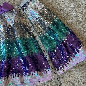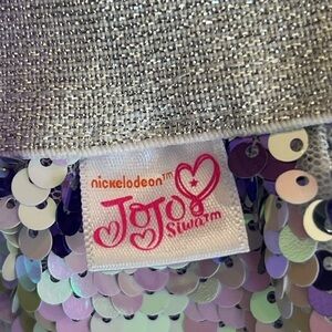 JoJo Siwa pink blue purple white sequin elastic waist girls skirt. The skirt is absolutely gorgeous. Has elastic glittery waistband for a comfortable fit topped with a purple bow. Pink, purple, blue, silver sequins. Dress is fully lined. Excellent condition. Girls size large or 10-12.
