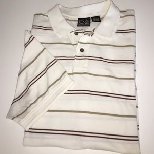 Jos A Bank Traveler short sleeve , creme color with brown and khaki tan stripes, good condition