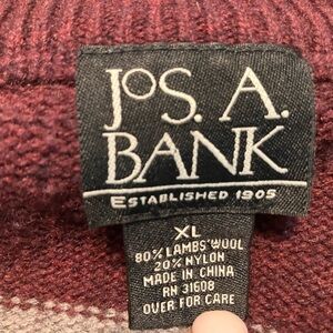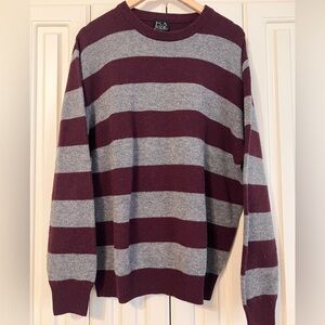 JoS. A. Bank Lambs Wool Blend Burgundy Gray Striped Crew Neck Sweater XL