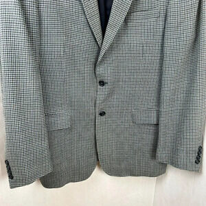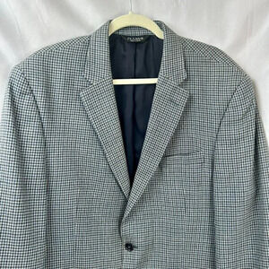 JoS Joseph A Bank Sportcoat, Jacket. Traveler's Collection, Tailored Fit. Check, Plaid, Gingham Pattern. Silk Wool Blend. Fully Lined. 2 Front Button Closures. 1 Chest Pocket, 2 Front Hip Pockets, 3 Interior Pockets. Long Sleeves with 4 Button Cuffs. Gray, Blue, Navy Blue. Size 42L
