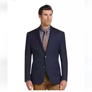 JoS A Banks tailored fit silk wool bland navy blue two button blazer coat sz 44L