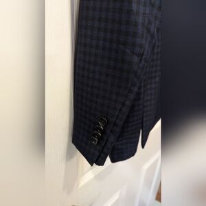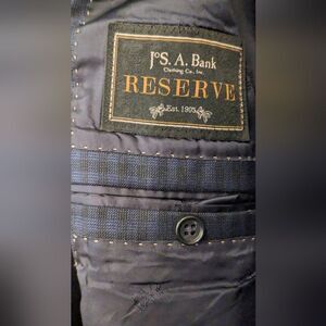 JoS A. Banks Banks Men's tailored fit silk wool bland navy blue plaid two button notch lapel sports blazer coat size 44L. Like new condition