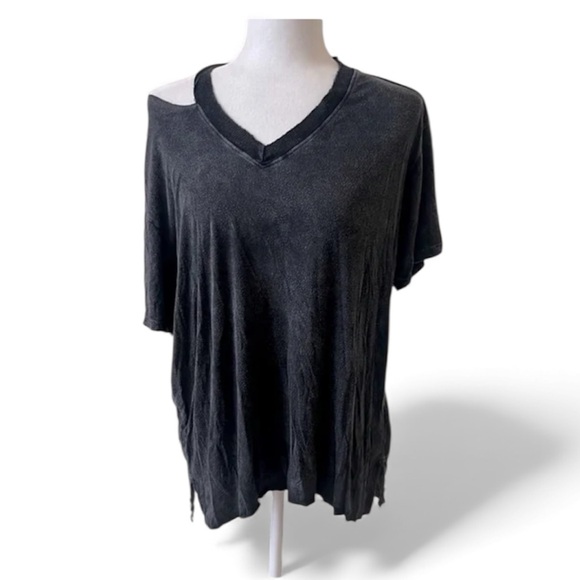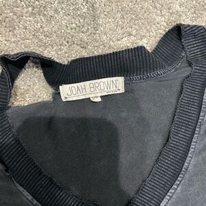 Joah Brown Black Plunge V-Neck Tee Shirt S/M Modal Spandex Distressed Grunge EUC