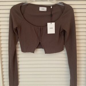 Joah Brown Hook and Eye Crop Top Medium Brown NWT
