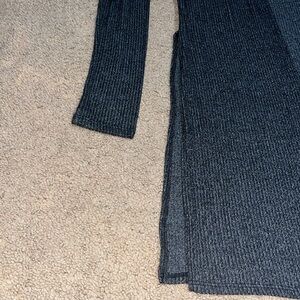Joah Brown Luna Side Slit Ribbed Cardigan Marble Hacci Heathered Black S/M. Tap into your inner hippie chick when you wear Joah Brown’s Luna Cardigan for Women. Two open slits in the back create chunky-like fringe that flows with your every move. Whether you’re dancing the night away at an outdoor concert series or layering up for the fall farmer’s market, the ribbed fabric adds a nice, bohemian touch to your casual endeavors. Large side slits. Open cardigan. Mid-length. Open, longline, knee-length cardigan with high side slits. Softer than soft and buttery smooth fabric with a subtle speckle pattern. Approx measurements: 19.5“ pit to pit & 36“ length. Great pre-owned condition. No stains/flaws. Smoke/pet free home. Offers welcome. Bundle & save. Ship same/next day. Packaged w/ care.