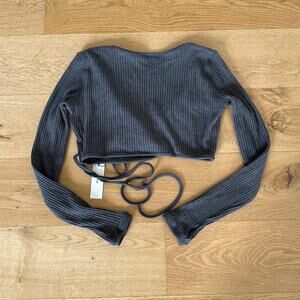 Joah Brown - Ribbed Wrap Around Top in Gray