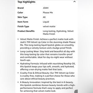 Joah TMI Velvet Lip Color No Regrets - NEW