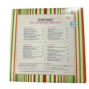 This is a double LP vinyl record of Joan Baez's The Contemporary Ballad Book, released in 1960s under Epic Records. The album features songs composed by Joan Baez and showcases her acoustic guitar, recorder, and bass guitar skills. It comes in a cardboard sleeve with the original cover.