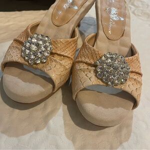 Joan Boyce Bejeweled Heels Women’s 7.5 168885 Tan/ Cream Silver Classic