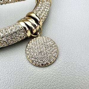 Beautiful set of Joan Boyce (unmarked) pave rhinestone and leather bracelets.