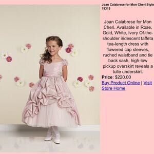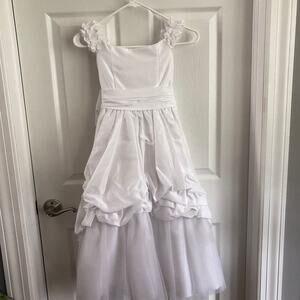 Joan Calabrese Girls formal dress aged 7 years old. White in color, my daughter wore it as a communion dress and it was beautiful. Needs to be cleaned. Any questions please ask. Originally $220