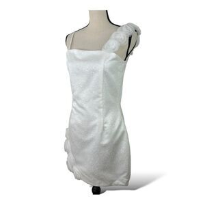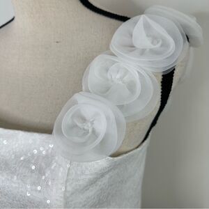 Joan Calabrese for Mon Cheri White Sequined Formal Dress Chiffon Flowers 16