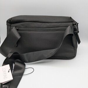 Joan & David 15" High-Density Quilted Nylon Passport Sling Pouch, Black, New