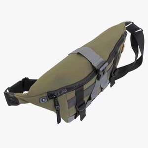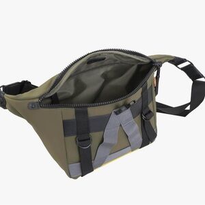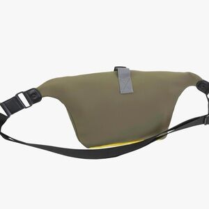 Stylish olive green belt bag with black and gray accents. Perfect for everyday use.