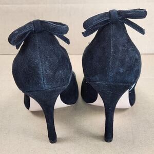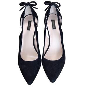Joan & David Black Suede Strappy Pumps Women’s SZ 9M Pointed Toe Bow Stiletto