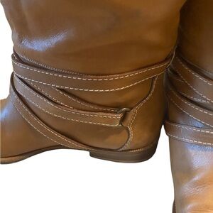 Joan & David Brown Camel Soft Leather Riding Boots Strappy Handmade Italy Sz 6?