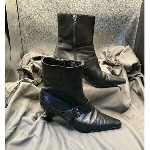 Joan & David CIRCA 7 M CJSKIP Black LEATHER Ankle Booties Boots~Gently Used