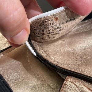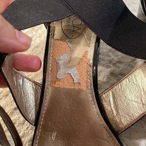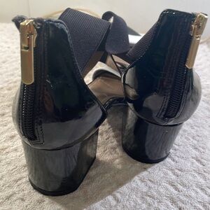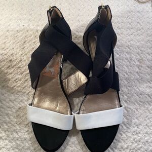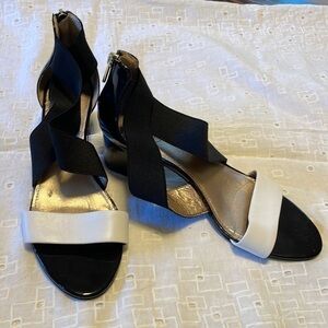 Classy looking Sandler in two tone and heel 2”. The cross cross hugs your ankle and zipper back for look and security. I just never wore them!