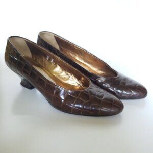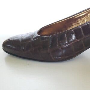 Joan & David Italian Brown Croc Print Leather Pumps -Hand Made in Italy, size 7B