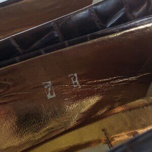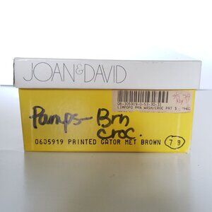 Meet the Chic Twin!) the sophisticated sister to my favorite black pair – these stunning Joan & David pumps are ready to charm their way into your collection! Dressed in a rich Limpopo Brown Croc Print (or Printed Gator Met Brown), this unique texture adds an undeniable touch of refined luxury. With a comfortable and elegant 2-inch heel, they're perfect for adding a chic pop to any outfit, from office-ready to a stylish weekend brunch. Condition: These beauties have been well-loved, just like their black counterpart, and show characteristic signs of a favorite pair – normal wear on the soles and heel caps, and gentle creasing on the supple leather upper. Their exceptional Italian craftsmanship means they're ready for many more stylish adventures! Grab this gorgeous "evil twin" and double your style! Crafted with the same meticulous artistry in Italy, they boast "Hand made in Italy" and "vero cuoio" (genuine leather) embossed on the sole, promising authentic quality. Let me know if you have any questions and thanks again for checking in!